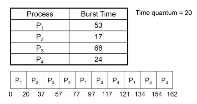 * Time Quantum이란 CPU에게 허용된 한 싸이클의 시간을 의미합니다. 예를 들어 Time Quantum = 10이고 1 Time Quantum동안 1개의 Instruction을 수행한다면, 10개의 Instruction을 수행한 후에는 스케줄링이 다시 이루어지는 것이죠.