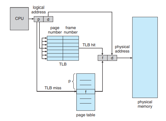 이를 해결하기 위해 Associative Memory인 TLB(Translation Look-aside Buffer)를 이용하는데요. 일반 메모리는 주소에 접근해서 데이터를 반환하는 반면, Associative Memory는 인덱스를 이용해 그에 매칭되는 데이터를 저장해두고, 다음에 동일한 접근이 일어나면 해당 데이터를 빠르게 반환할 수 있게 합니다.