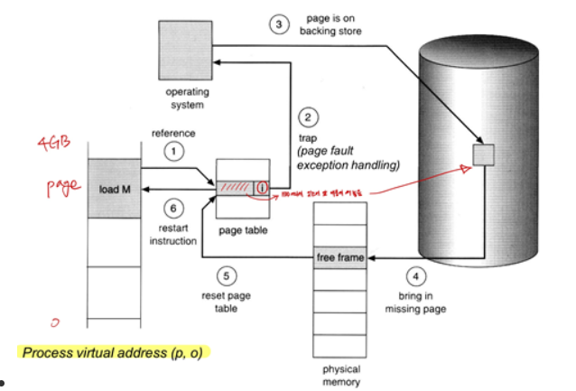 그렇다면 이런 상황을 어떻게 대처할까요? 우선 기본적인 Page fault handling 메커니즘을 아래 그림을 통해 이해해보겠습니다.
