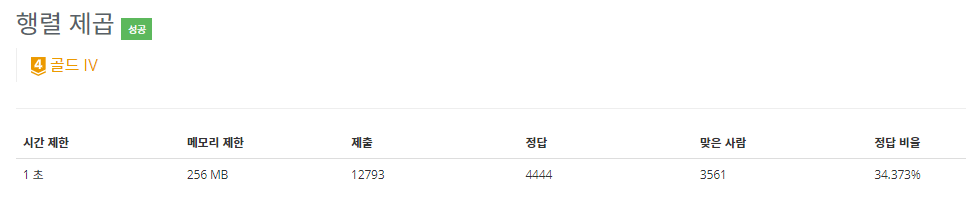 그런데, 이 로직을 그대로 따라가도 시간초과가 발생하는데, 이를 해결하기 위해서는 multiplyMatrix()안에 있는 것처럼 매 곱셈마다 행렬의 수를 1000으로 나눠줘야만 합니다. 그렇지 않으면 매우 큰 수의 연산을 하는 데 드는 시간으로 인해 시간초과가 발생할 수 있습니다.