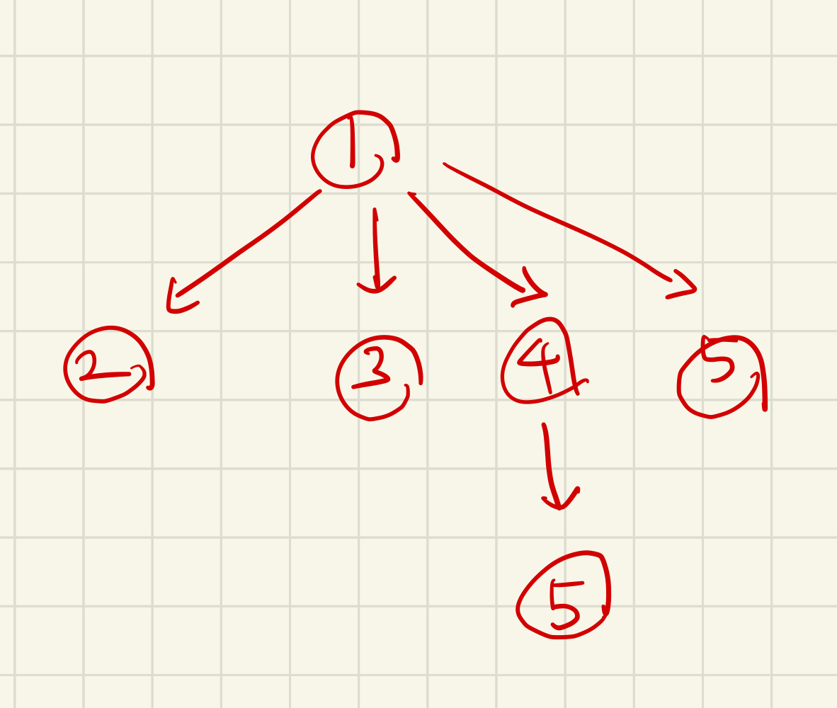 그러면 맨 처음 순회에서 2, 3, 4, 5번 노드의 부모는 1번 노드로 설정이 되고, 이 때 parents = {2:'1', 3:'1', 4:'1', 5:'1'}이 됩니다.