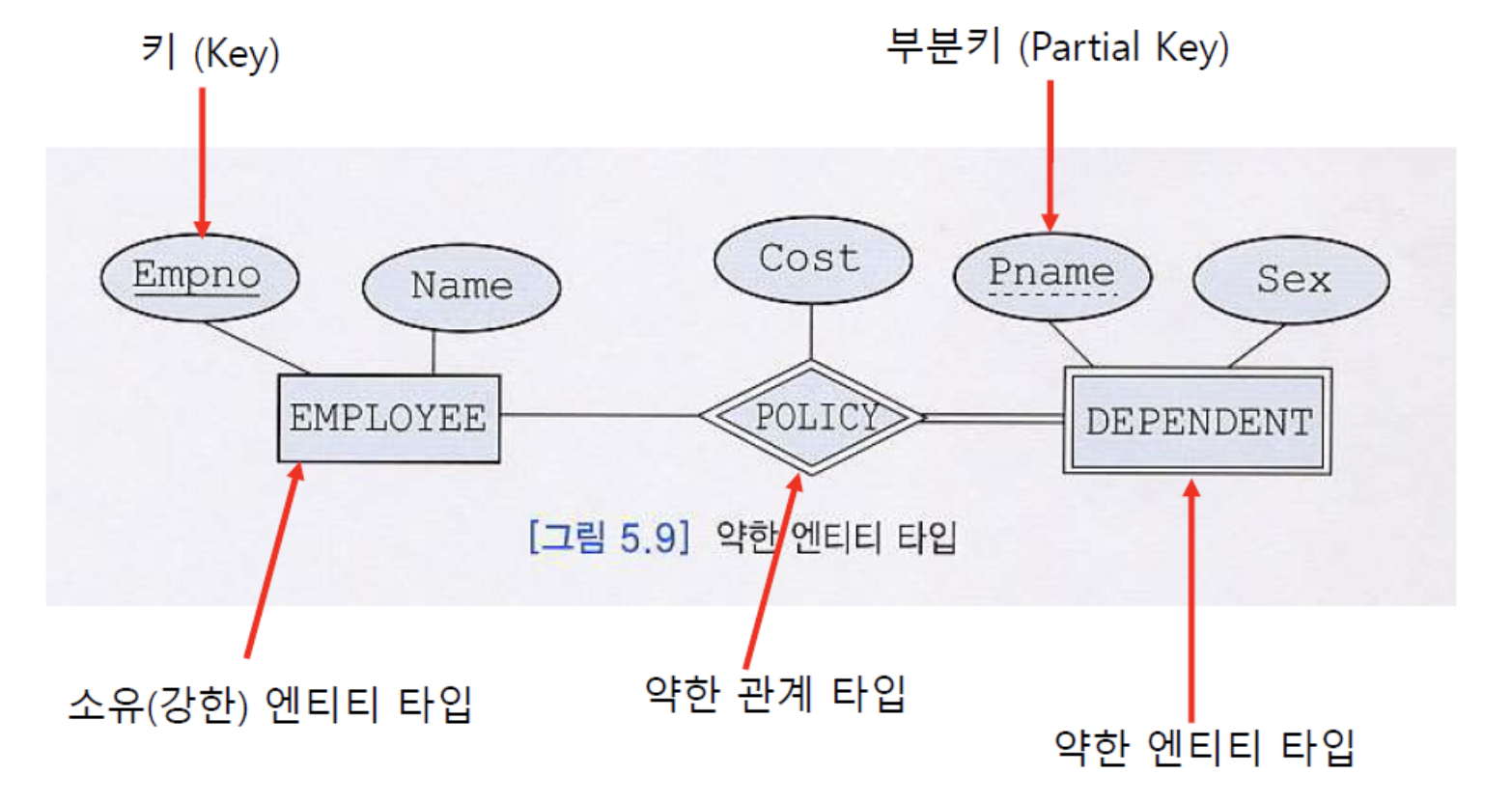 그렇다면, 강한 엔티티 타입과 약한 엔티티 타입이라고 나누는 것은 해당 타입에 속하는 엔티티들의 속성이 무언가 다르다는 것이겠죠?