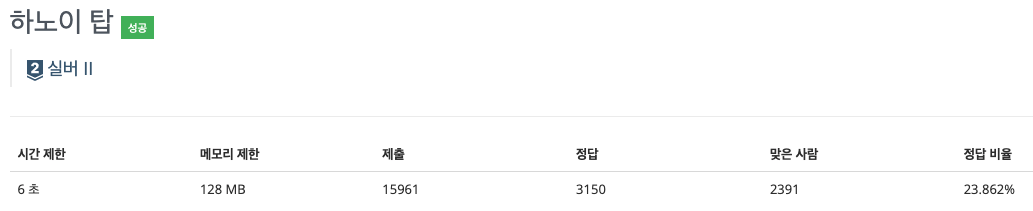 # 하노이탑을 완성하는 데 드는 횟수