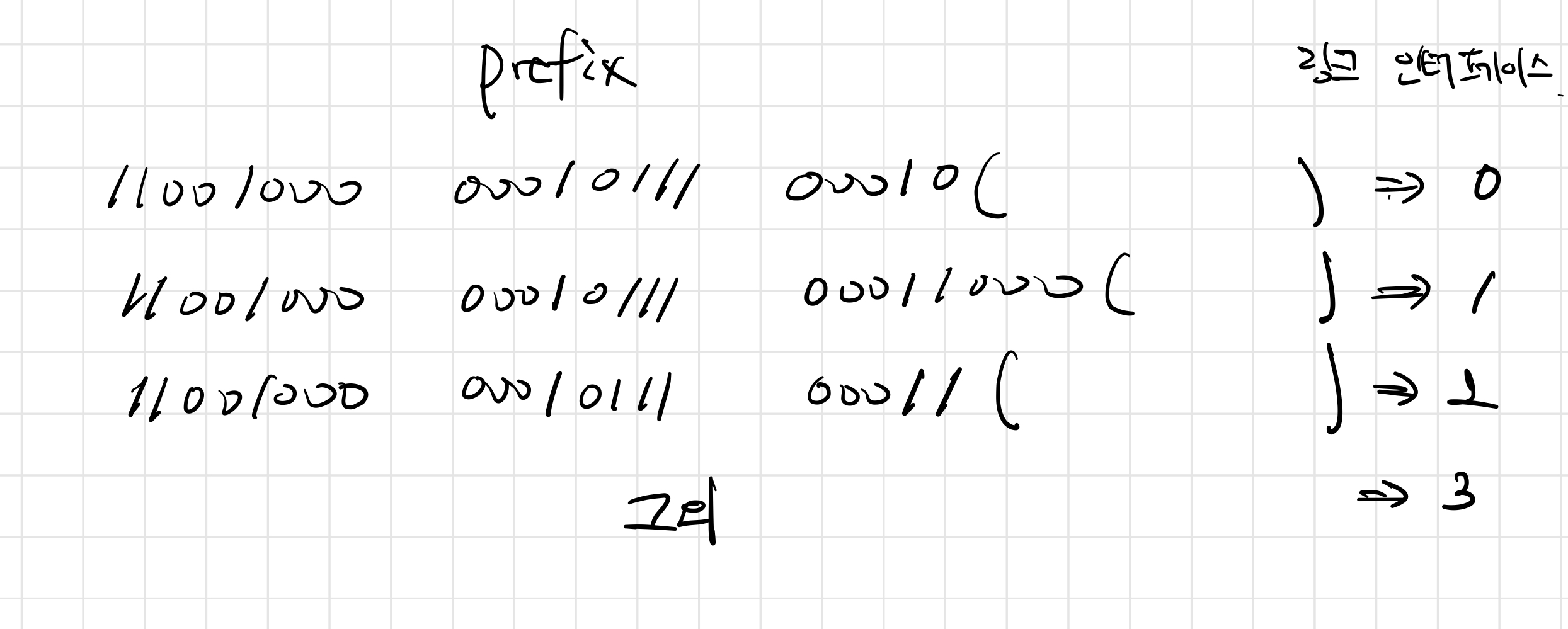 위 그림에서 왼쪽은 목적지의 주소 범위를 나타내고 오른쪽 빨간색으로 쓴 숫자는 링크 인터페이스를 의미합니다. 그러니까 첫번째 줄에서 (11001000 00010111 0001000 00000000 ~ 11001000 00010111 00010111 11111111) 범위 안에 있는 목적지 주소는 0번 링크 인터페이스로 우선 보내겠다는 뜻이죠.