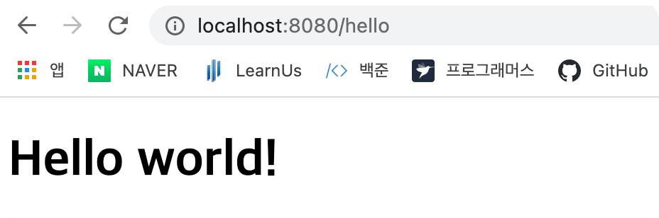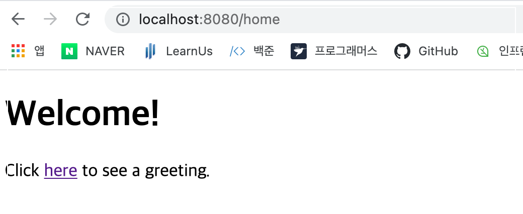 MvcConfig를 작성하게 되면, "/home"과 "/" 루트 모두 home 뷰를 보여주게 됩니다. 마찬가지로 "/hello", "/login" 역시 hello와 login 뷰로 등록이 됩니다.