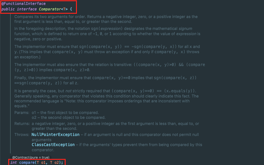 이것이 가능한 이유는 위에서 설명했던 것처럼 Comparator<T> 인터페이스 자체가 '함수형 인터페이스'로 정의되어 있었고, 이미 int compare() 메서드의 파라미터 개수와 반환 타입이 일치하기 때문이었습니다."
