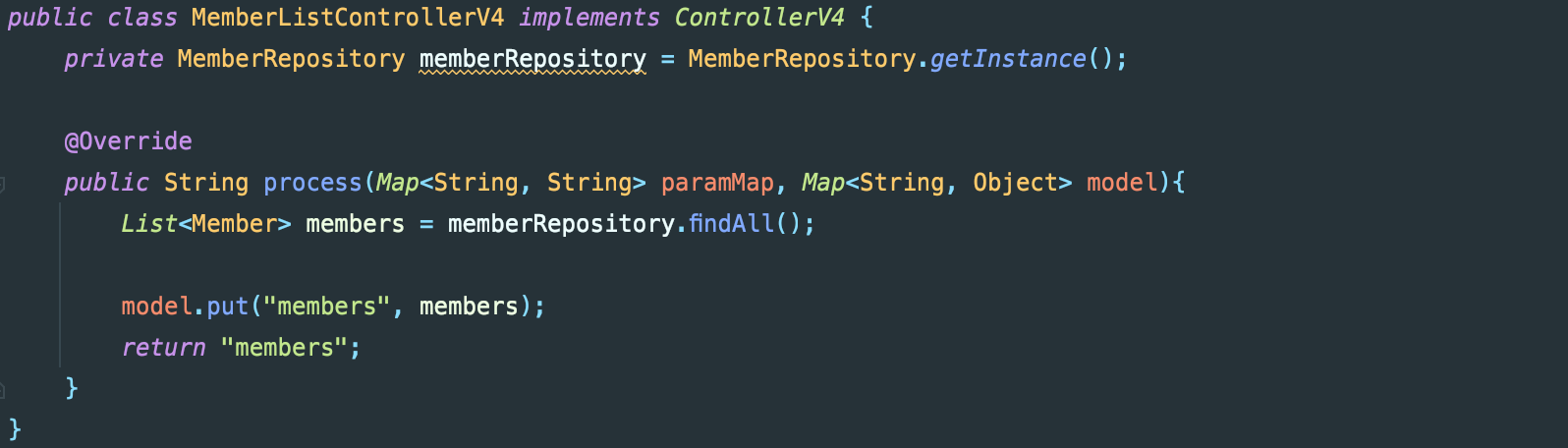 controllerMap.put("/front-controller/v4/members", new MemberListControllerV4());