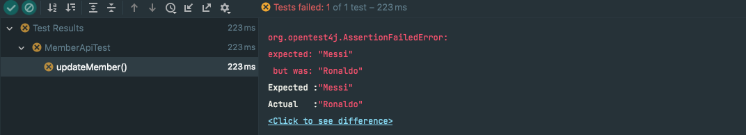 결과를 보면, 테스트코드는 실패하는 것을 볼 수 있는데요.