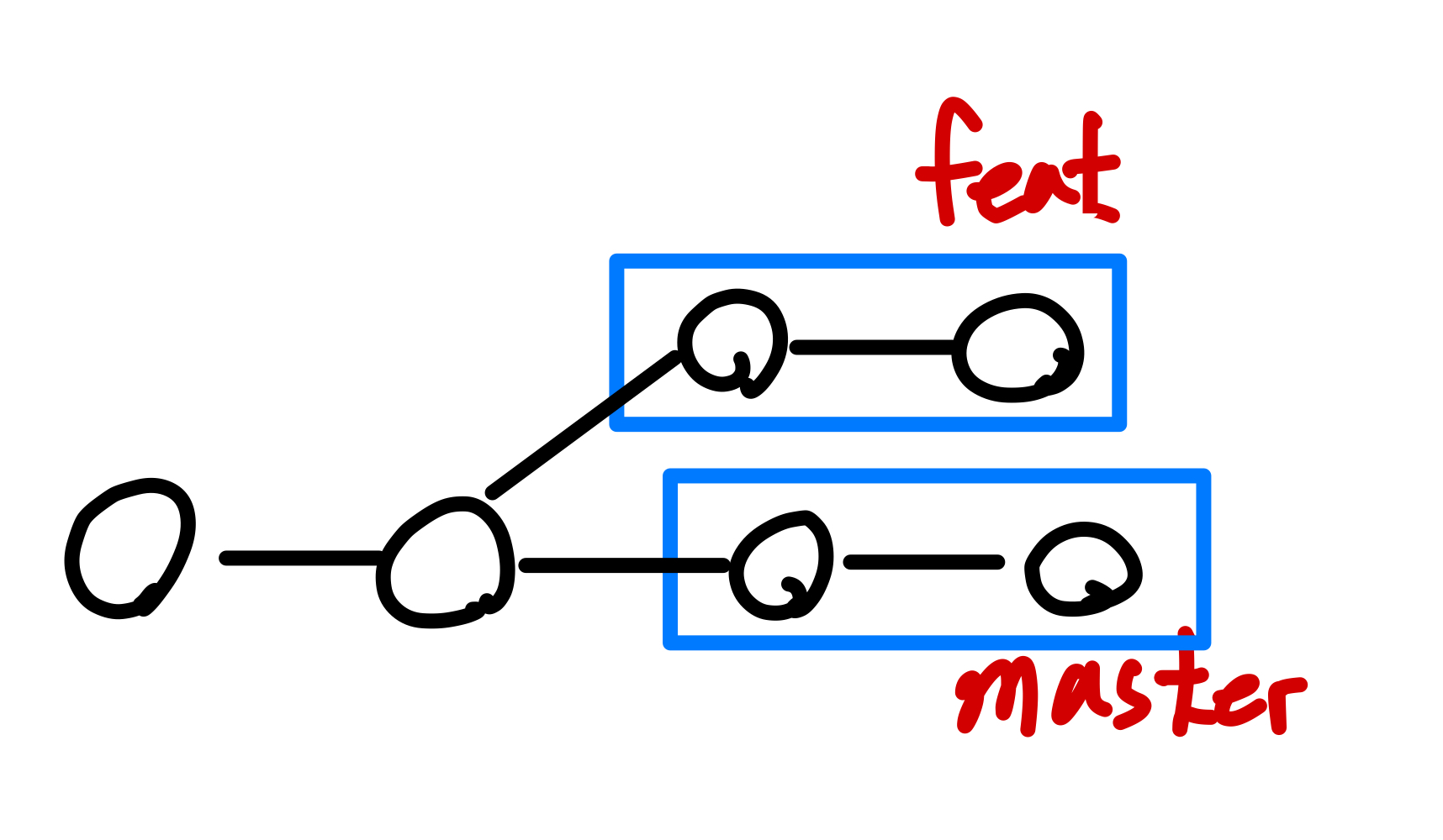 처음 시작점을 기준으로 Master가 두 번의 Commit을 한 뒤, 'feat' 이라는 브랜치(branch)를 생성했습니다.