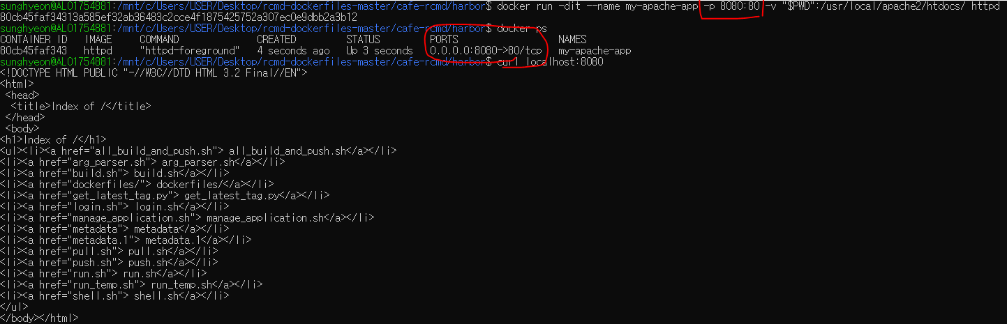 $ docker run -dit --name my-app --net=host -v "$PWD":/usr/local/apache2/htdocs/ httpd