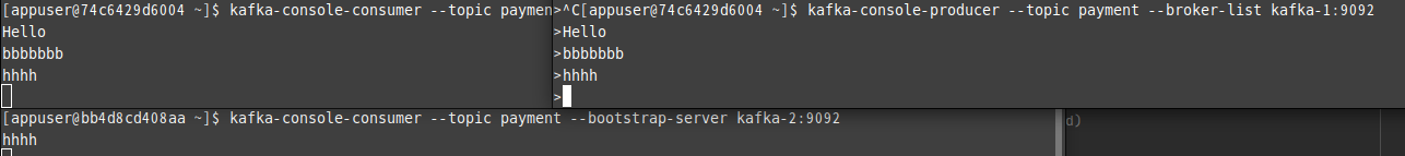 $ kafka-console-consumer --topic payment --bootstrap-server kafka-2:9092