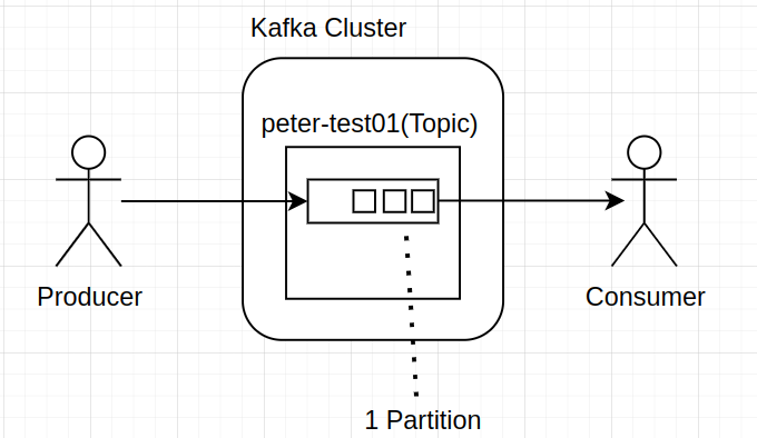 $ kafka/bin/kafka-topics.sh --bootstrap-server localhost:9092 --topic peter-test01 --partitions 1 --replication-factor 1 --create