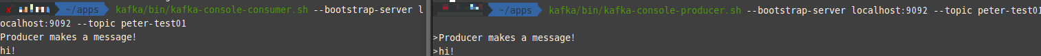 $ kafka/bin/kafka-console-producer.sh --bootstrap-server localhost:9092 --topic peter-test01