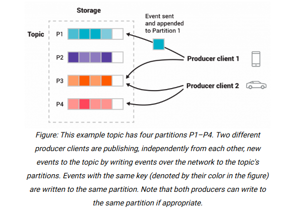 하나의 Topic에는 여러 Partition이 존재할 수 있으며 각 Partition은 Broker란 녀석이 관리하고 있습니다. 그리고 여러 Partition에 다수의 Producer가 이벤트를 저장할 수 있고, 다수의 Consumer가 동시에 이벤트에 접근할 수도 있습니다.