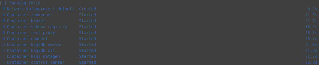 docker-compose 파일 실행을 완료하면 아래와 같은 내용을 볼 수 있고, 실제로 실행된 컨테이너 목록들을 확인할 수 있습니다.