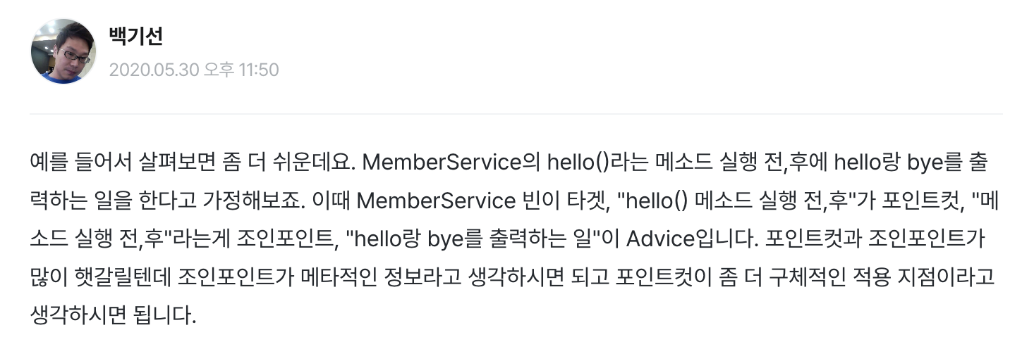 벌써 몇 번째 글을 수정하고 다시 쓰고 하는 것 같은데, 그만큼 Spring AOP를 이해하고 설명하는 데는 꽤 시간이 많이 드는 것 같습니다.