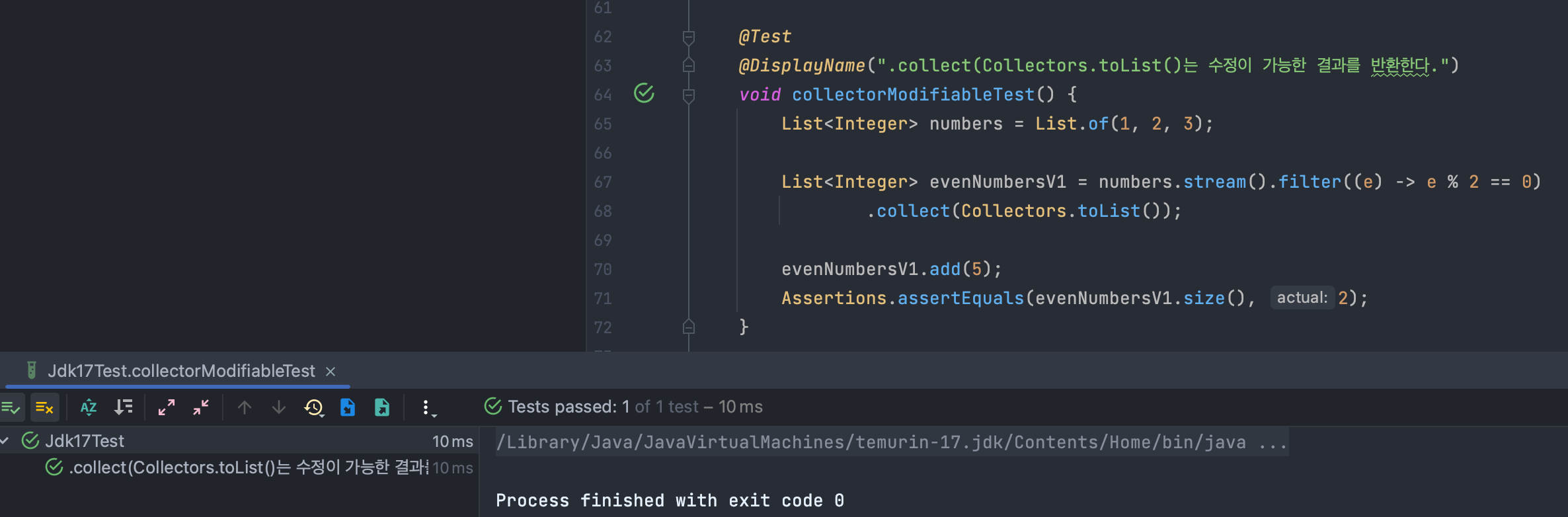 하지만 JDK 17 부터는 .toList()만으로 결과 리스트를 반환할 수 있게 되었습니다.