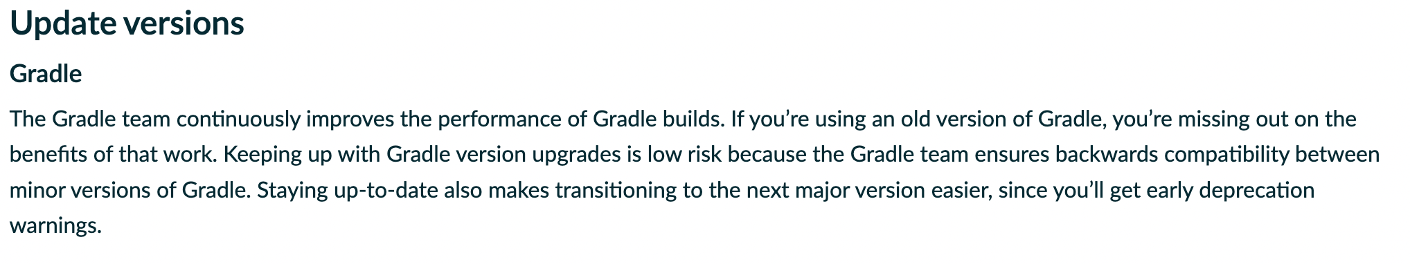 Gradle 측에서는 가장 최신 버전을 사용하는 것이 더 나은 빌드 속도와 추가적인 기능들을 제공한다고 했기 때문인데요.