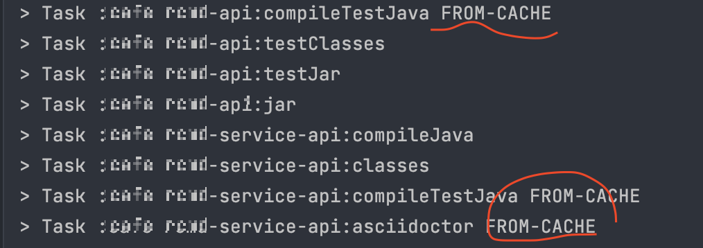 그런데 이 때, clean 작업을 하게 되면 Gradle은 inputs에 대한 전부 새로운 outputs를 생성해야 되기 때문에 모든 Task를 다시 수행하게 됩니다.