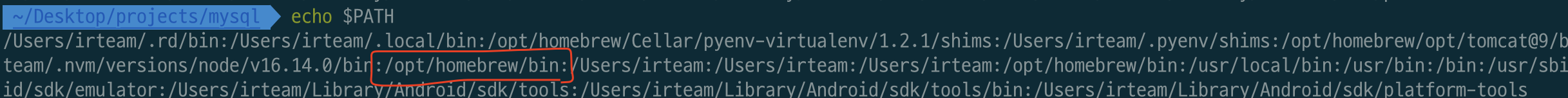 한편, brew를 통해 MySQL을 설치하면 아래와 같이 $PATH에 /opt/homebrew/bin이 자동으로 추가됩니다.