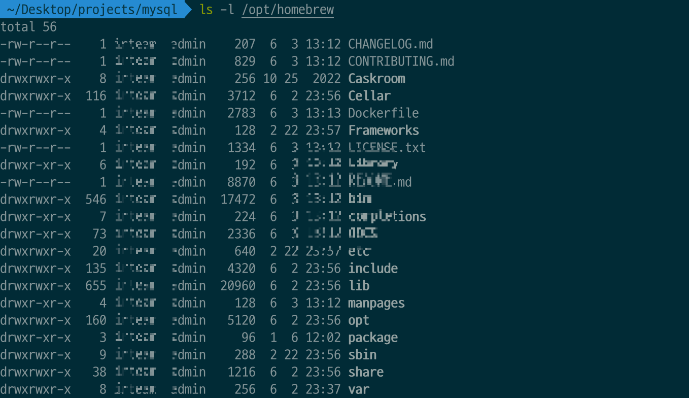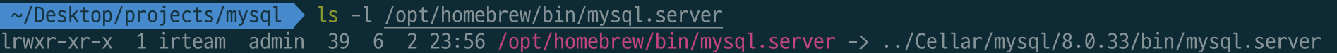 그리고 /opt/homebrew/bin에 존재하는 실행 파일들의 심볼릭 링크를 확인해보면, 우리가 실제로 사용하고 있는 /opt/homebrew/Cellar 하위의 mysql 실행 파일들에 연결된 것을 확인할 수 있습니다.