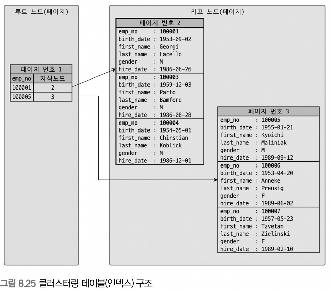 MySQL 서버에서 클러스터링은 테이블의 레코드를 비슷한 것(PK 기준)들끼리 묶어서 저장하는 형태로 구현되는데, 이를 클러스터링 인덱스라 하며 주로 비슷한 값들이 동시에 조회되는 경우가 많다는 점에서 착안한 것이라고 합니다.