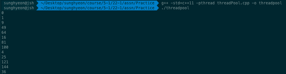 먼저 쓰레드풀을 사용하기 위해 ThreadPool 클래스를 작성합니다(C++11 환경에서 boost 라이브러리를 깔아도 threadPool을 사용하기가 편하진 않았습니다).