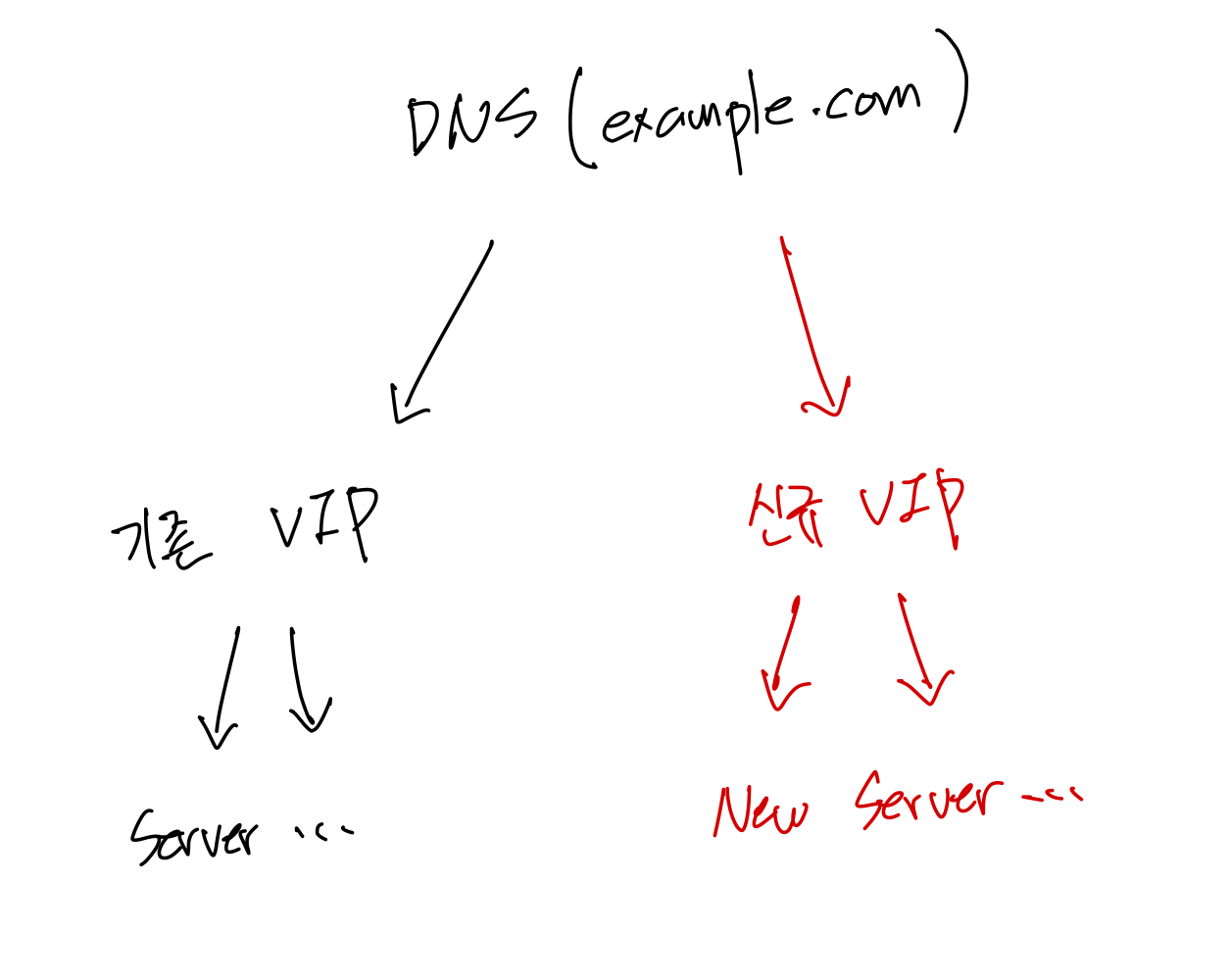 그런데 만약 신규 서버를 발급받고, 신규 서버들을 바인딩하는 새로운 VIP를 기존 DNS에 연결하려면 어떻게 해야할까요?