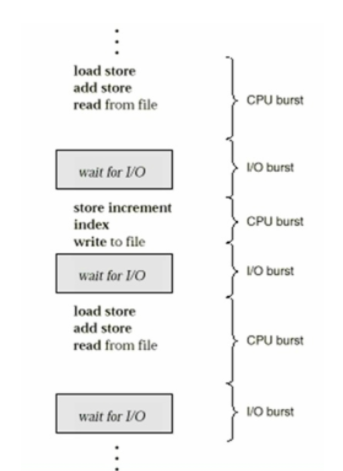 각 싸이클은 CPU를 사용하는 Burst time과 그 뒤에 I/O Burst time이 존재합니다.